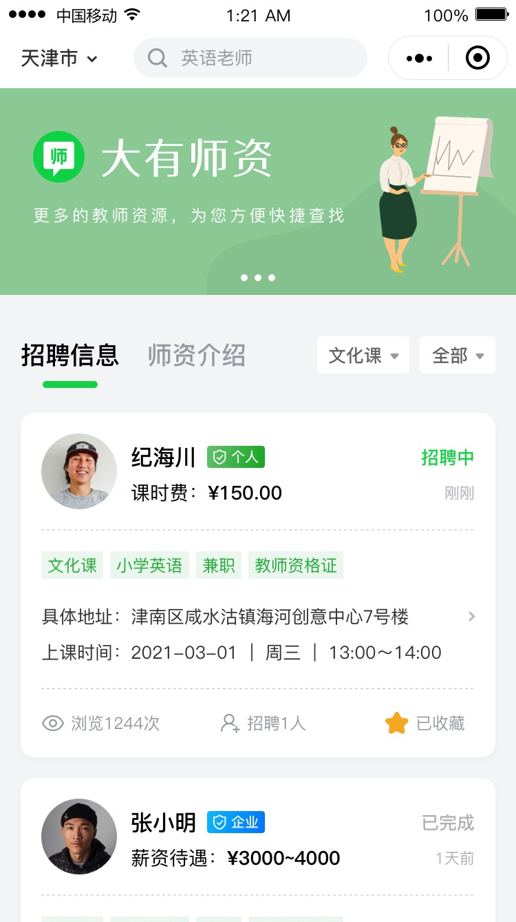 一个免费发布招聘信息找工作的师资平台环球医疗+小程序